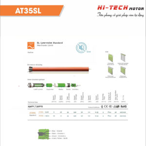 - Động Cơ AT35SL là động cơ rèm cuốn, hình ống đường kính 35mm, dùng cho các bộ rèm cuốn kích thước từ nhỏ đến trung bình. Động cơ nhận sóng ngoài có 4 dây, có thể kết nối với công tắc cơ hoặc smarthome. Bảo hành động cơ 3 năm